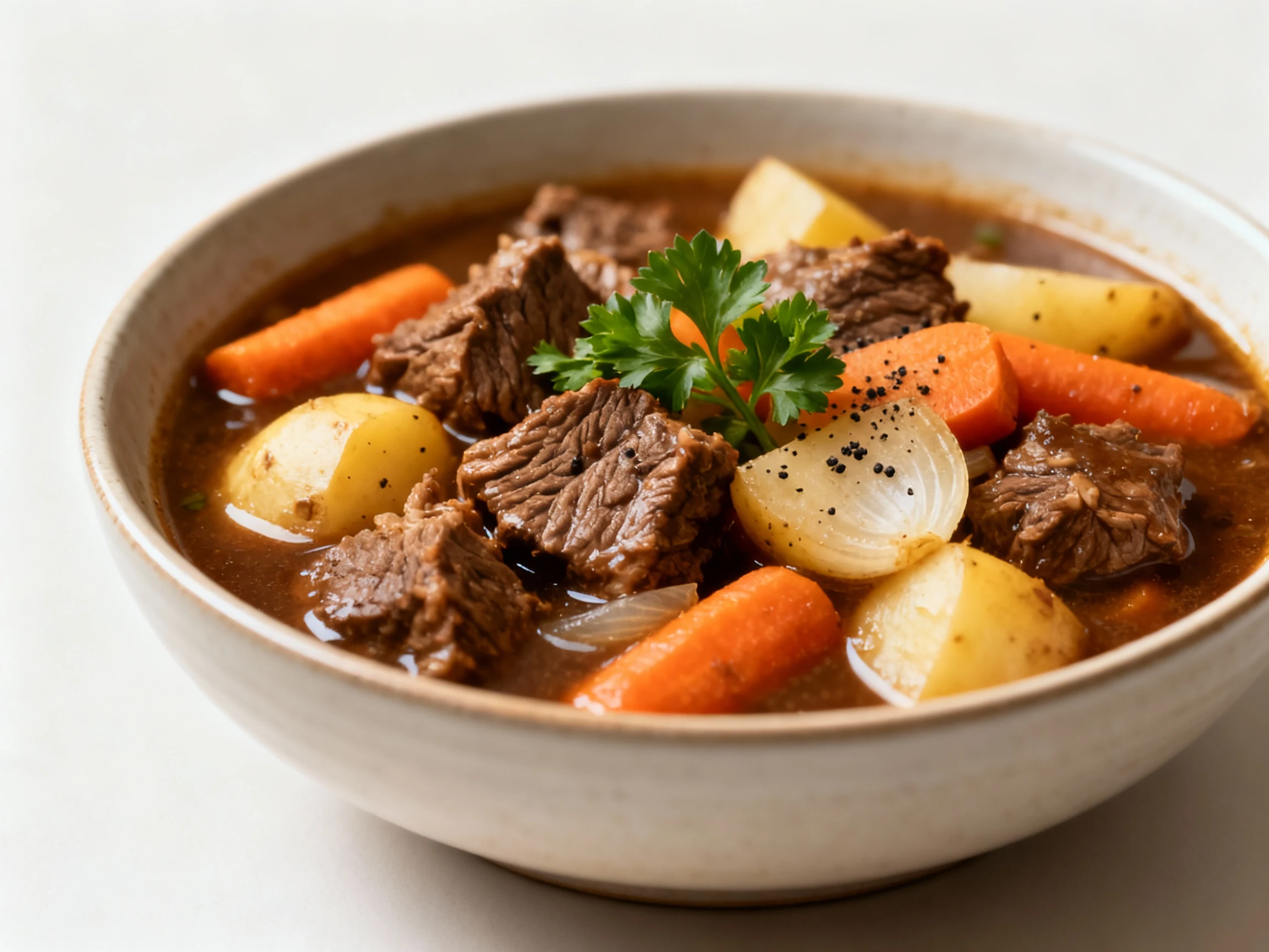 Reheat gently on the stove over medium-low until hot. If it thickens too much, add a splash of broth or water. If it thins out, simmer uncovered a few minutes to reduce. Keep it smart: avoid boiling hard so the beef stays tender.