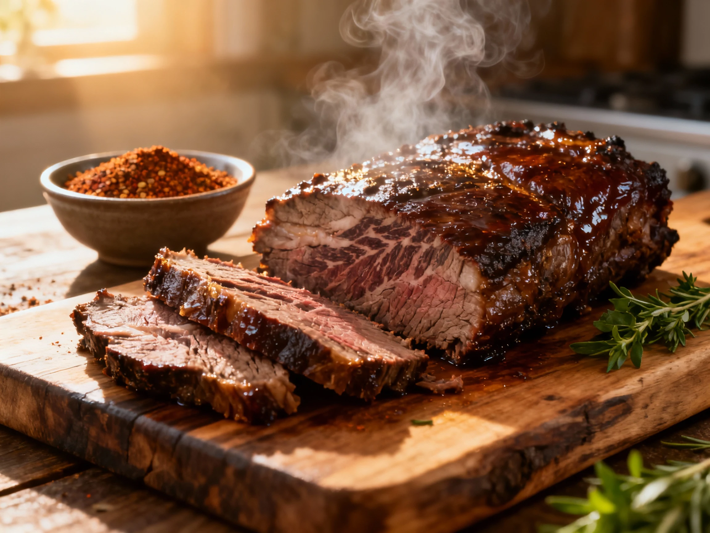 - Texas-style: Just salt, pepper, and smoke it low over oak wood until the bark is perfect.