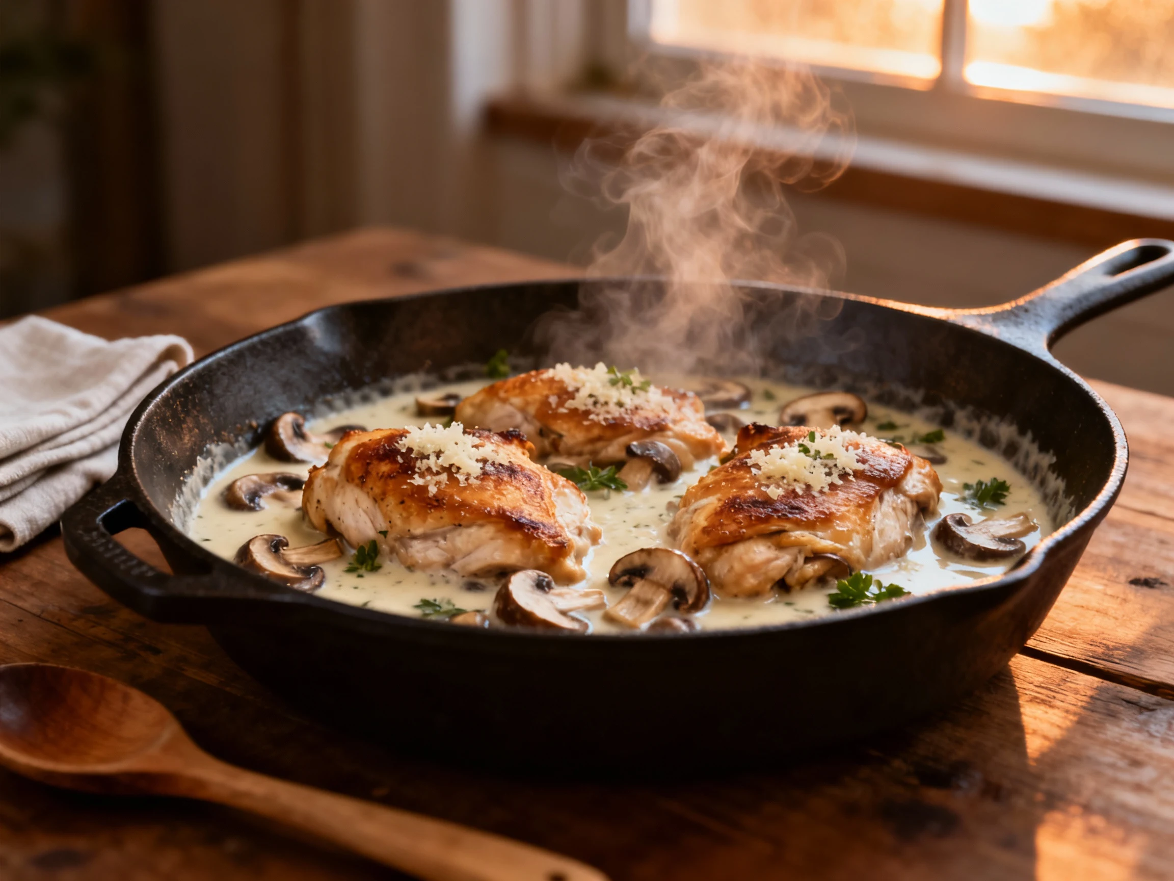 This dish sits at the sweet spot of effort-to-payoff: minimal moves, maximum flavor. The trio of browned chicken, golden mushrooms, and a silky garlic-Parmesan sauce never gets old. Keep your heat honest, your lemon handy, and your pan uncongested, and you’ll nail it every time. And once you master the base, the variations turn your kitchen into a choose-your-own-adventure—no chef coat required.