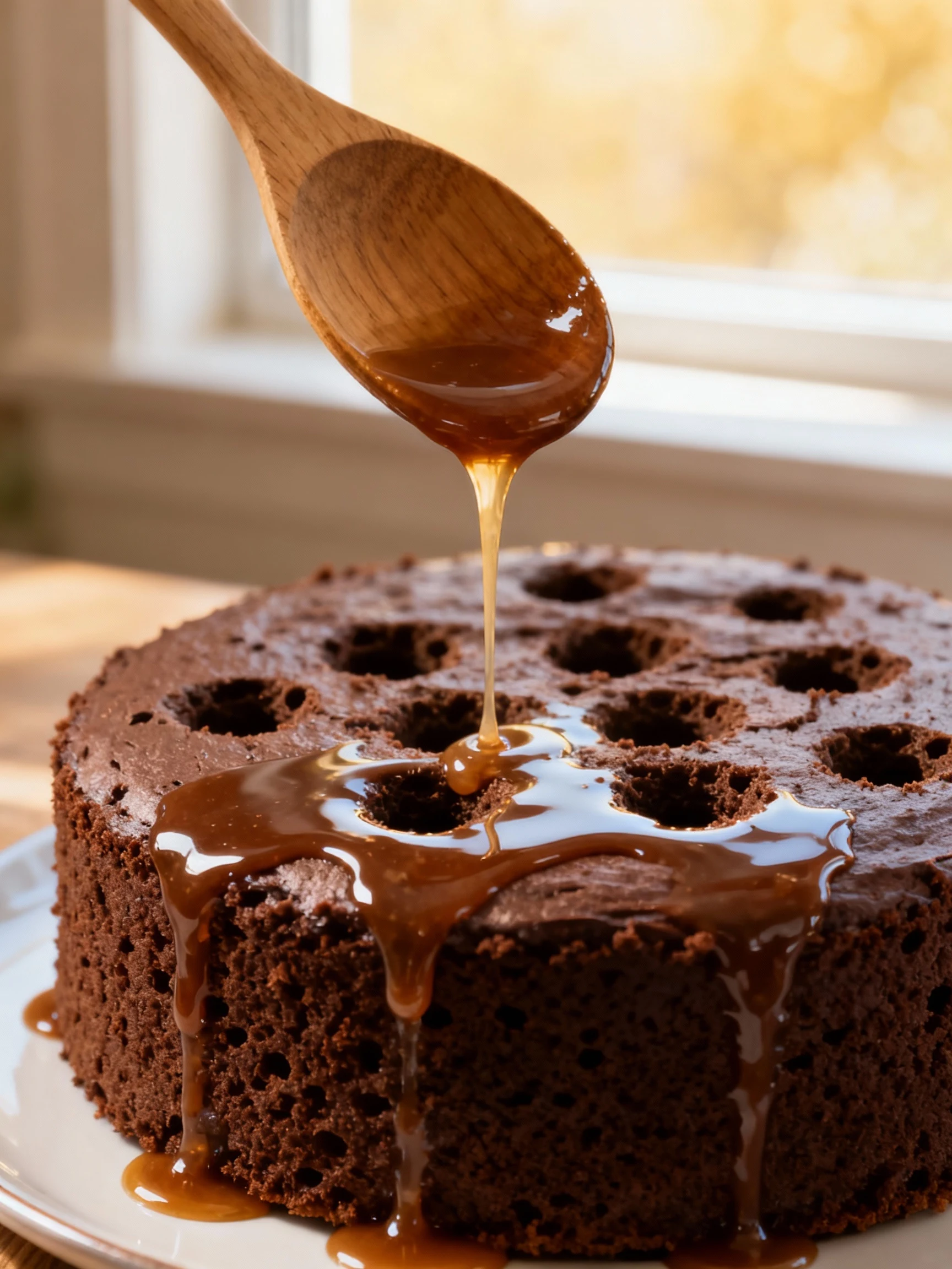 Poking too early or too late. If the cake is scorching hot, it can tear. If it’s fully cold, it won’t absorb as well. Warm is the sweet spot.