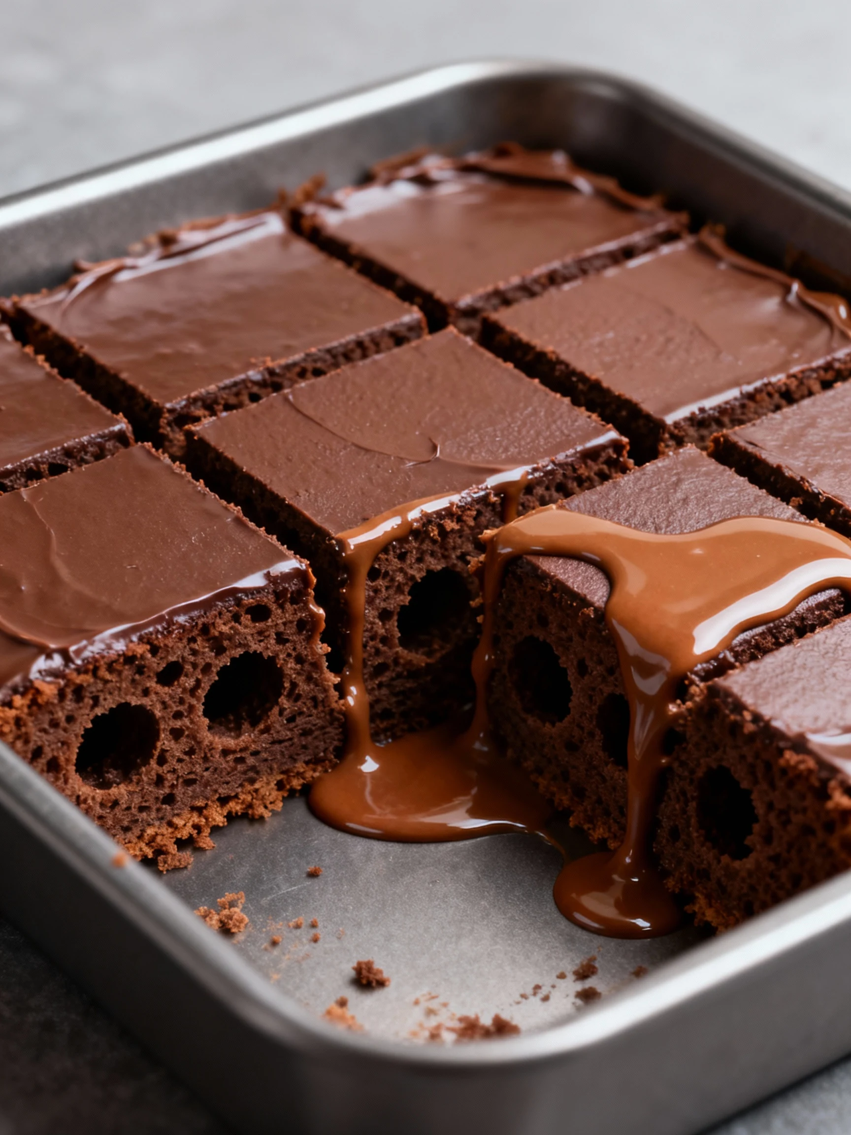 The poke cake move is the cheat code: you create tunnels for fudge and sweetened condensed milk to sink into every bite. That’s why it tastes like a lava cake and a brownie had a very successful collaboration.