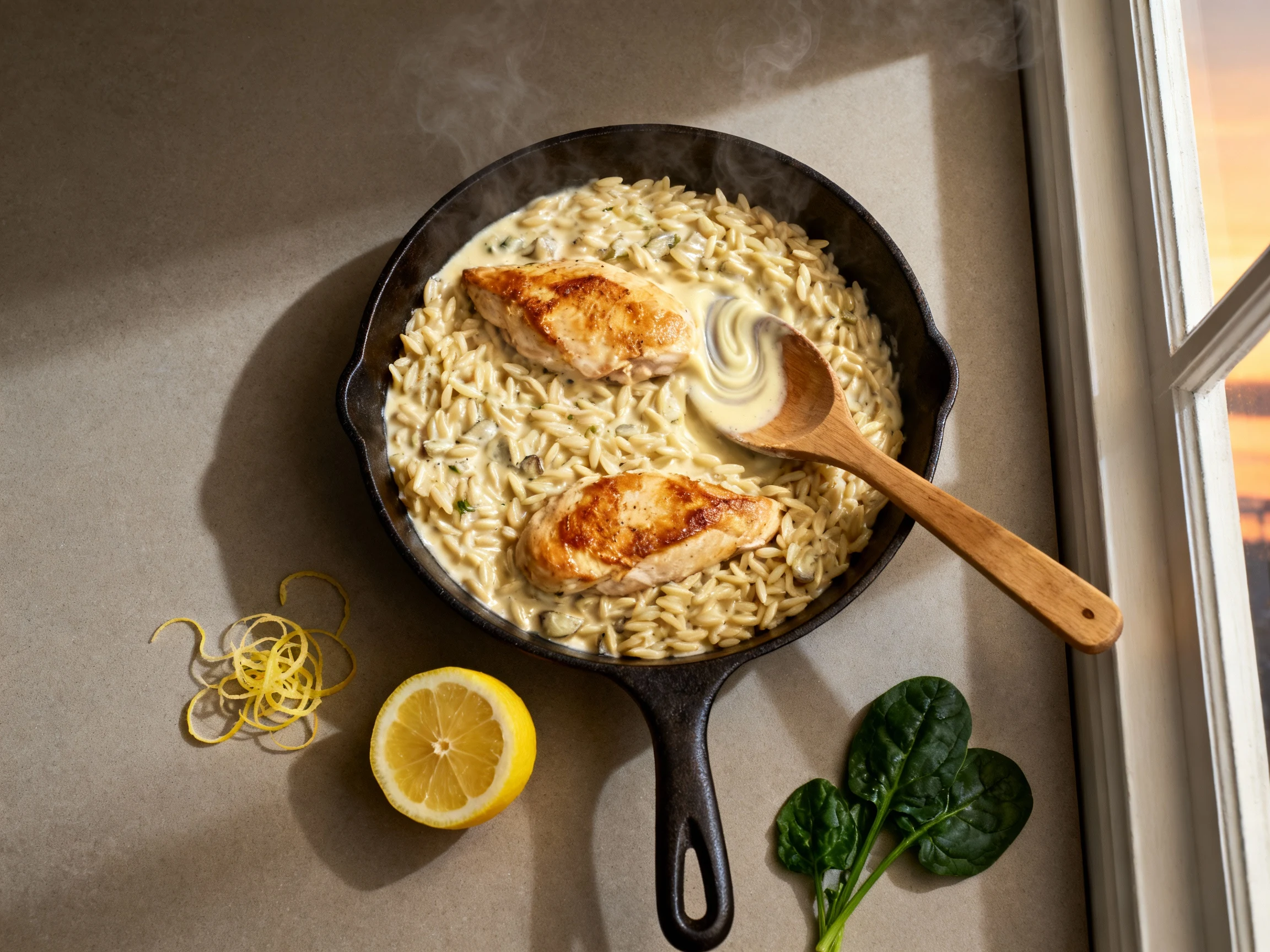 This one-pan Creamy Lemon Garlic Chicken Orzo is the weeknight power move: fast, flavorful, and right-sized for real life. You get big sear, bright citrus, and a silky finish that feels premium without the effort. Keep it flexible, season with intention, and you’ll have a repeat winner on your hands.