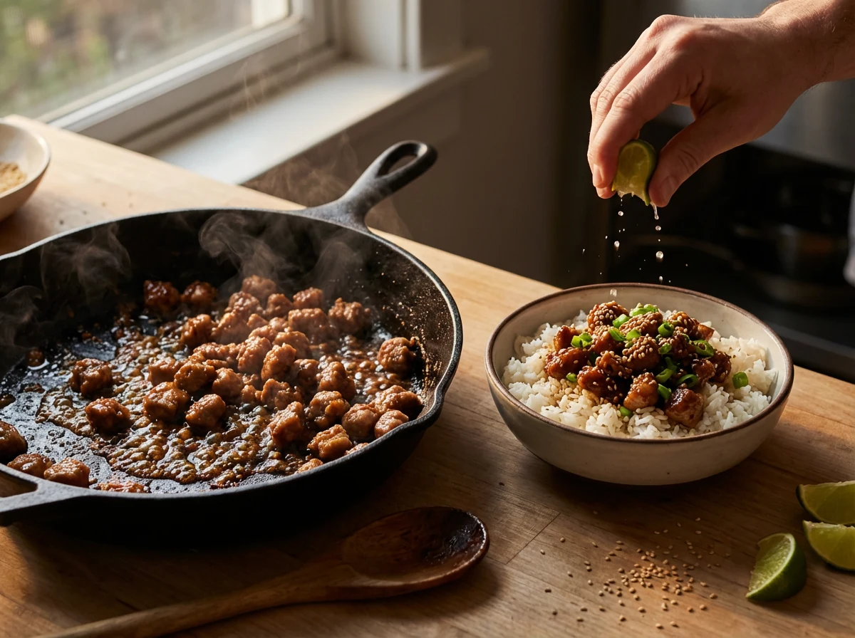 FYI: small crumbles mean more surface area, which means more crispy edges and more sauce-to-meat contact. That’s why this tastes like takeout—without the delivery fee or the wait.