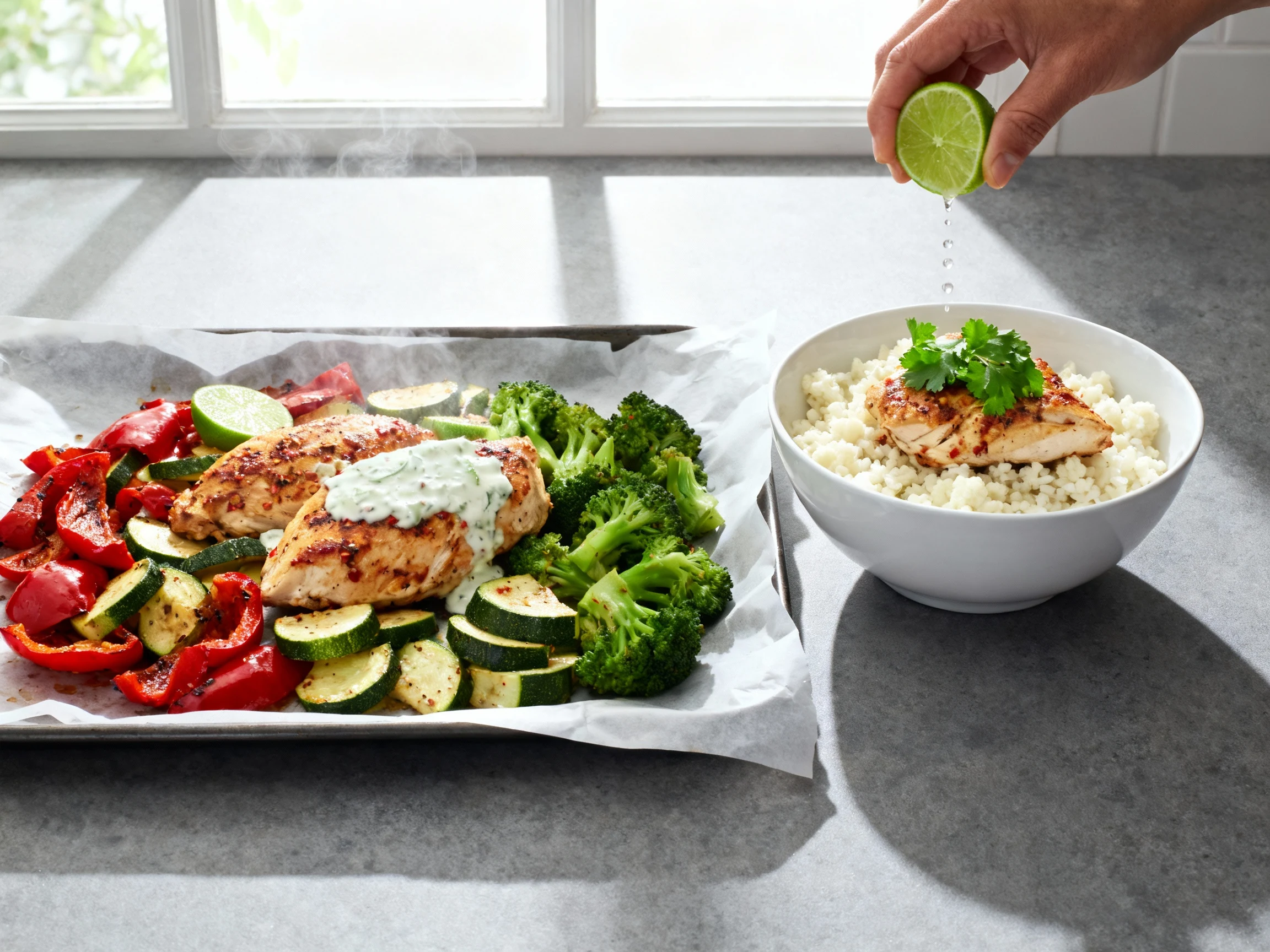 Meet your new go-to: a one-pan chili-lime chicken and veggie power bowl with cauliflower rice. It nails the two things that matter most: lean protein and calorie control, without tasting like a compromise. The yogurt-lime marinade makes the chicken insanely tender and punchy, while the roasted veg add texture and color that scream “eat me.”