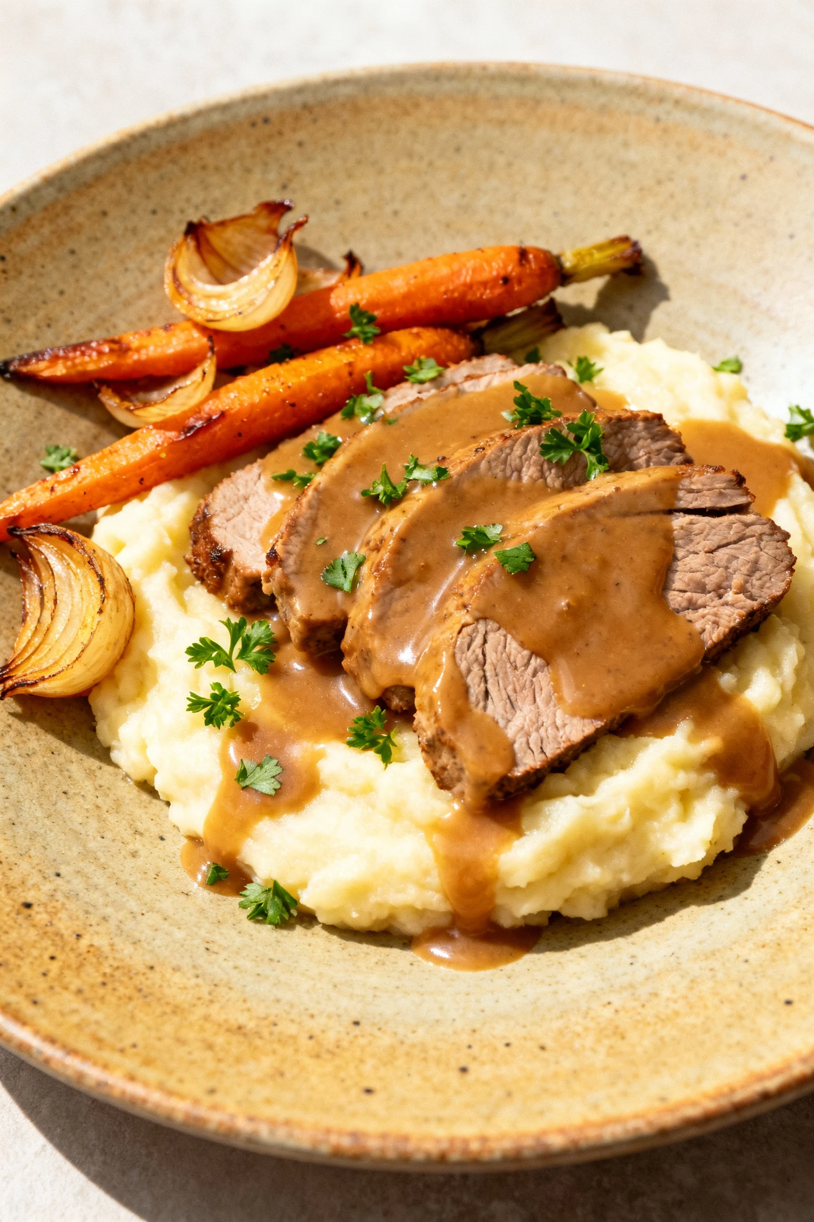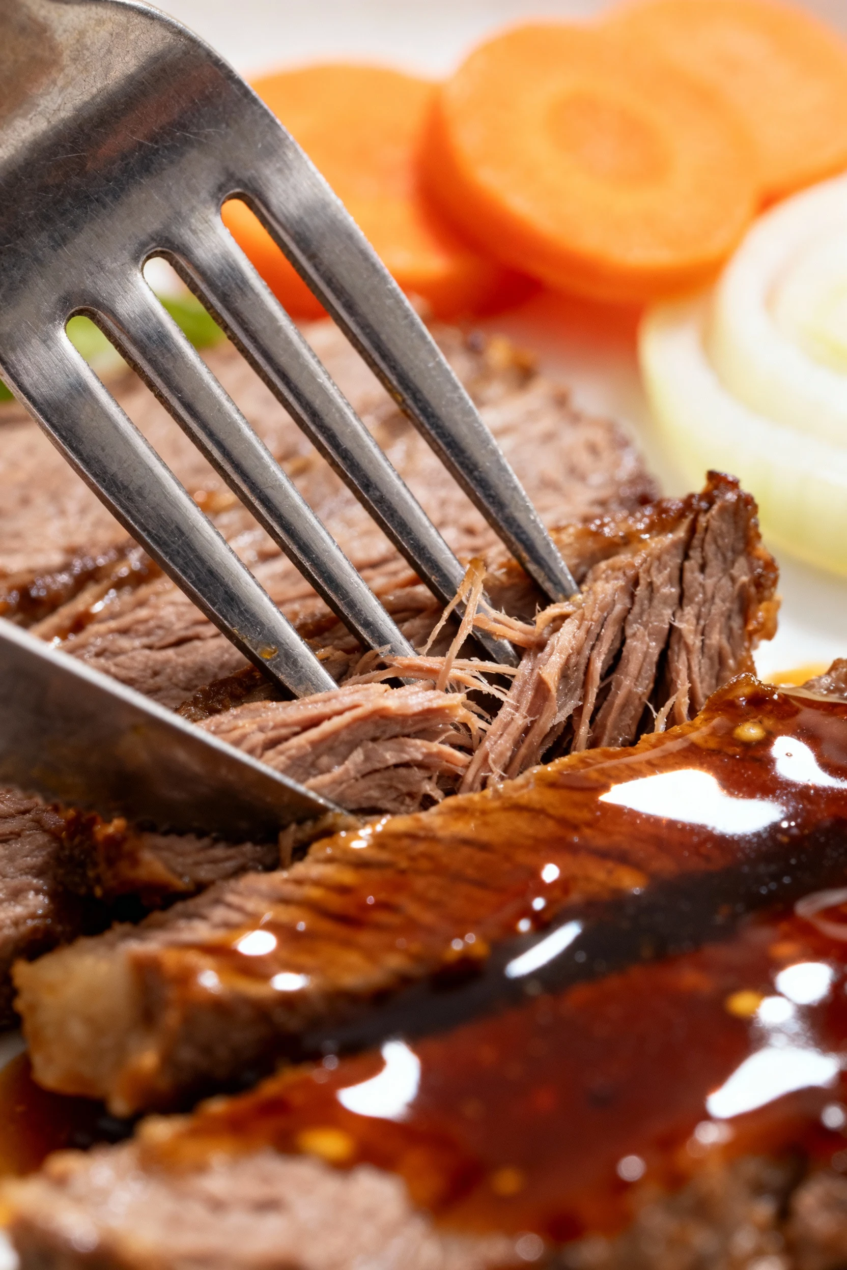 - Slice or shred: Cut against the grain or gently pull into large chunks. Return meat to gravy.