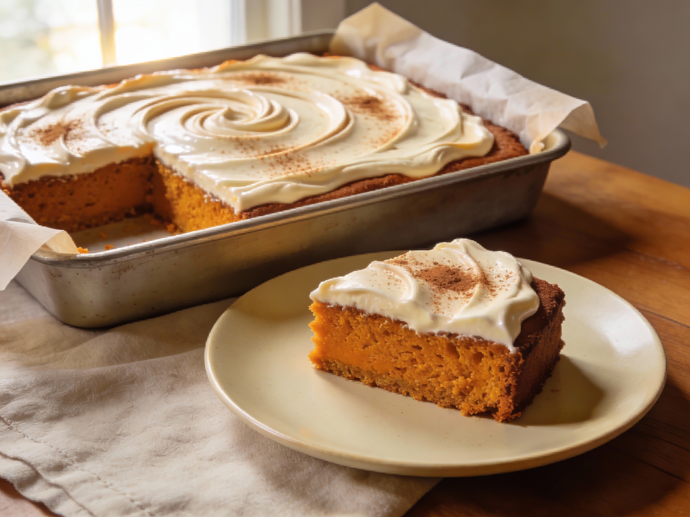 Absolutely. Use plant milk plus vinegar for “buttermilk,” and opt for dairy-free cream cheese or a simple maple glaze. The cake stays moist thanks to the pumpkin and oil.