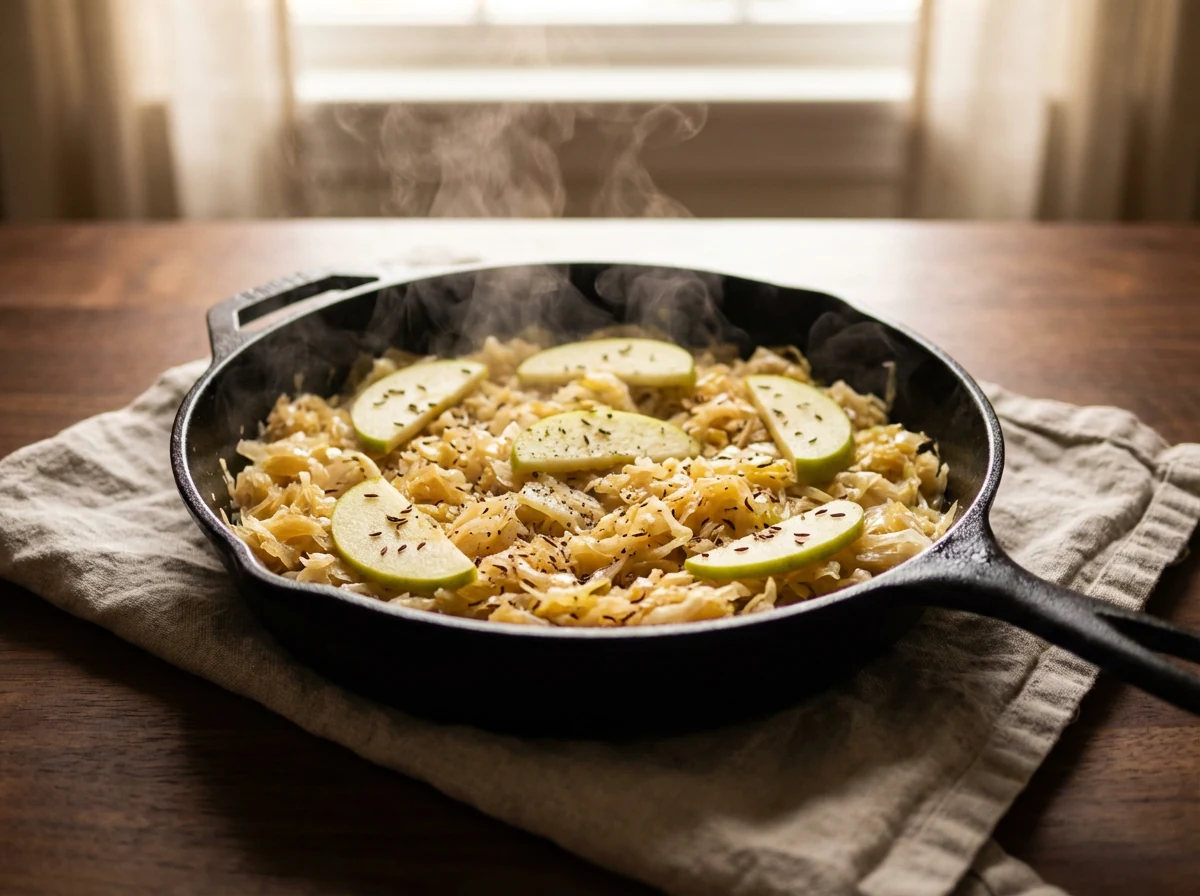 Tangy kraut meets sweet apples and warm caraway for a cozy German side in 30 minutes—ideal with pork chops, brats, or roast chicken.