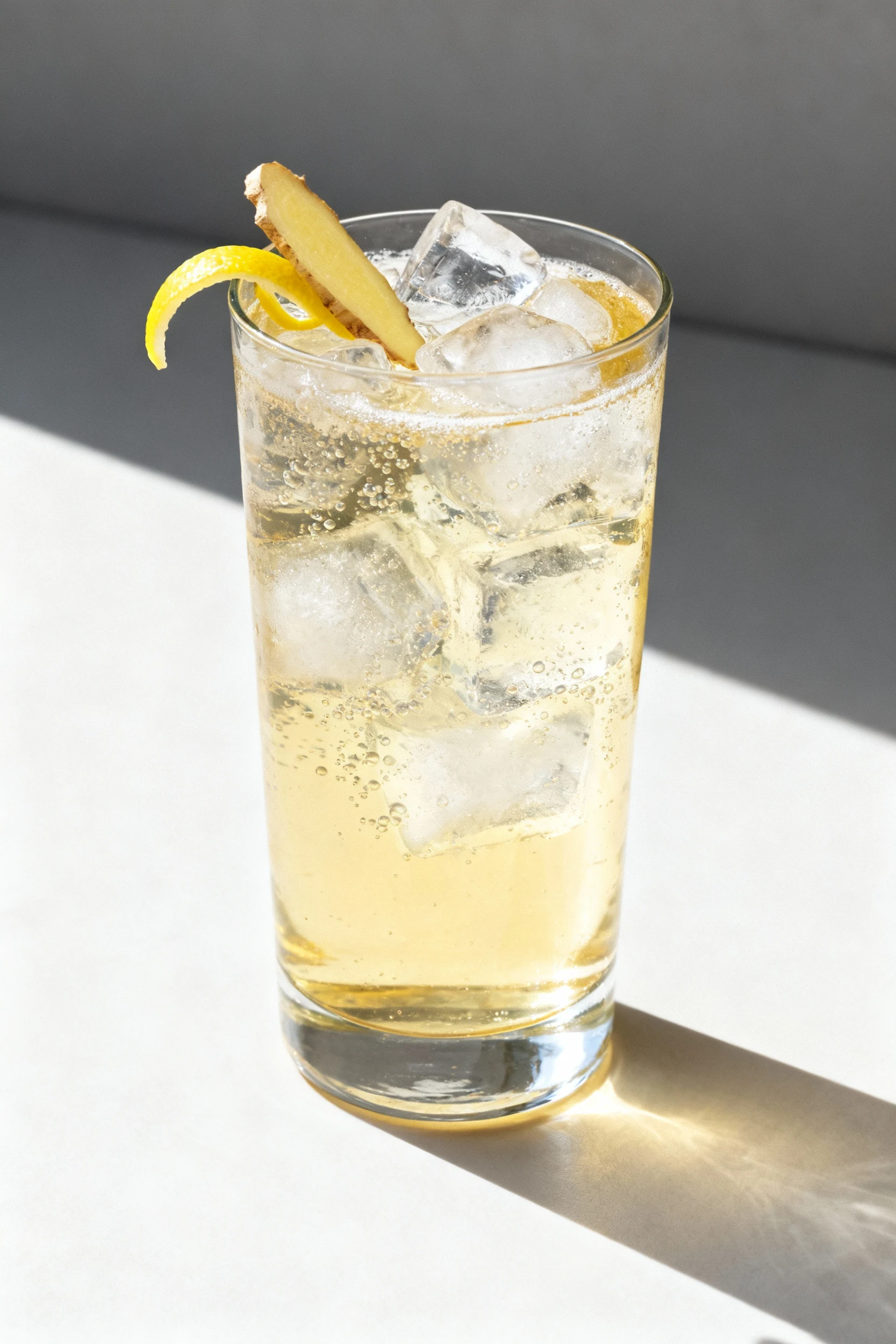 • Spiced Ginger Fizz: 1 oz Ginger Syrup, 3/4–1 oz lemon juice, 4–5 oz club soda, ice, thin ginger slice.
