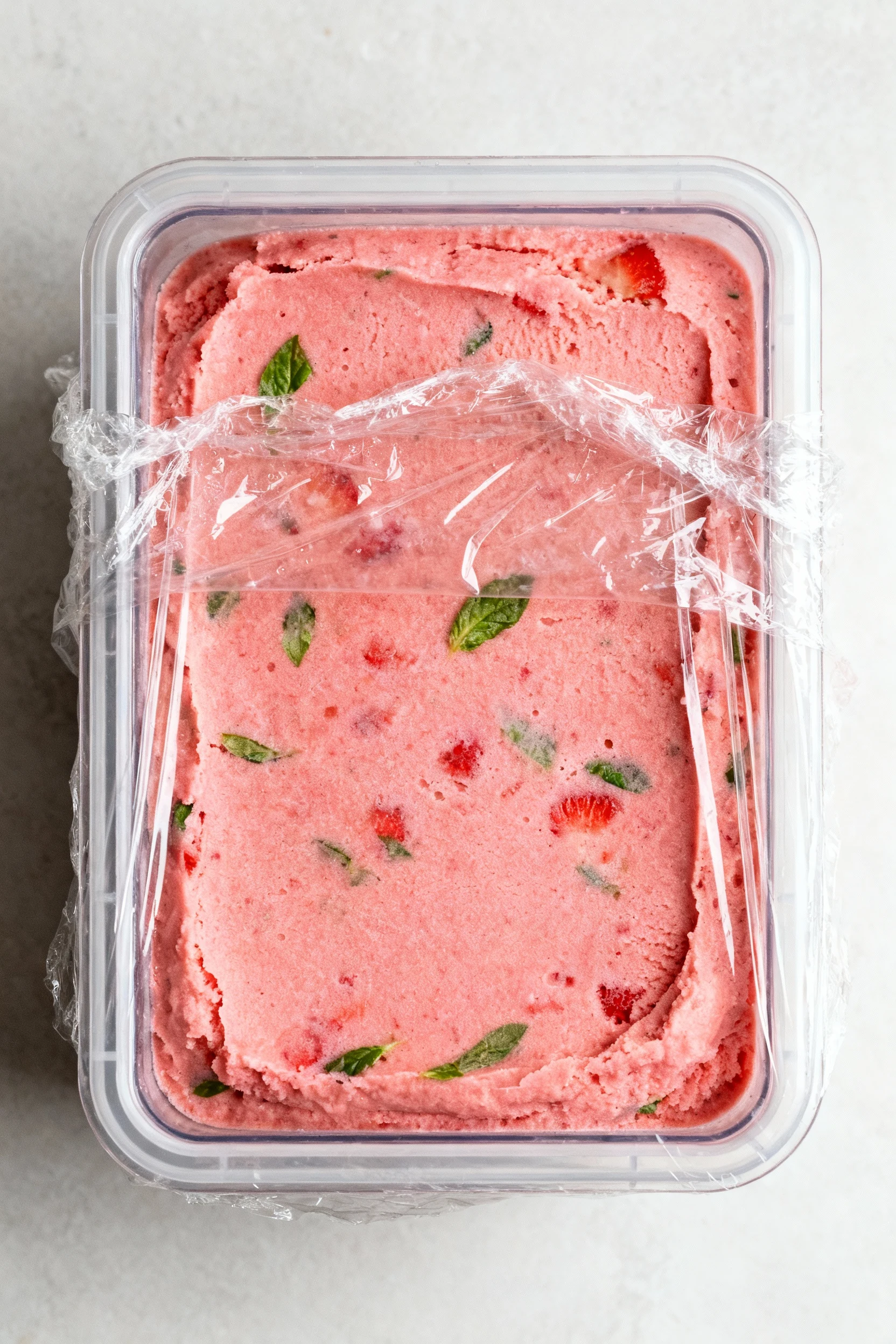 For peak flavor and texture, enjoy within 2–3 weeks. After that, it won’t go “bad,” but it can develop freezer burn and dull flavors. FYI, alcohol additions (like vodka) help keep it scoopable longer.