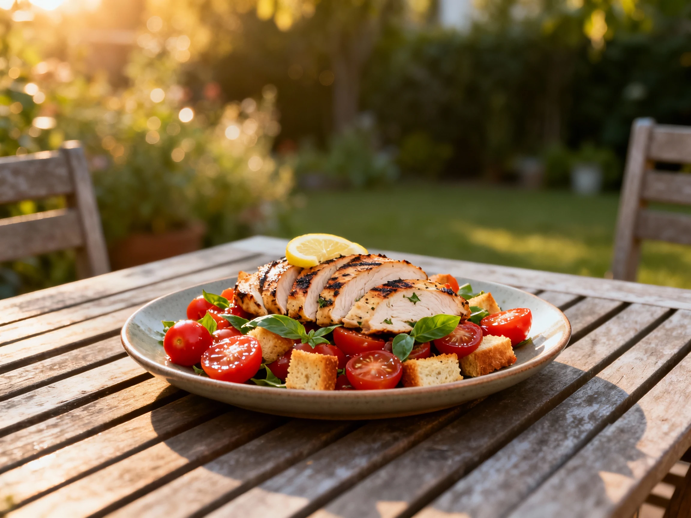 We’re anchoring this article with one hero recipe: Grilled Lemon-Herb Chicken over Burst Tomato Panzanella. It’s bold, bright, and built for short attention spans. Everything cooks fast, and most of the work happens with marinades and a quick grill or skillet sear.