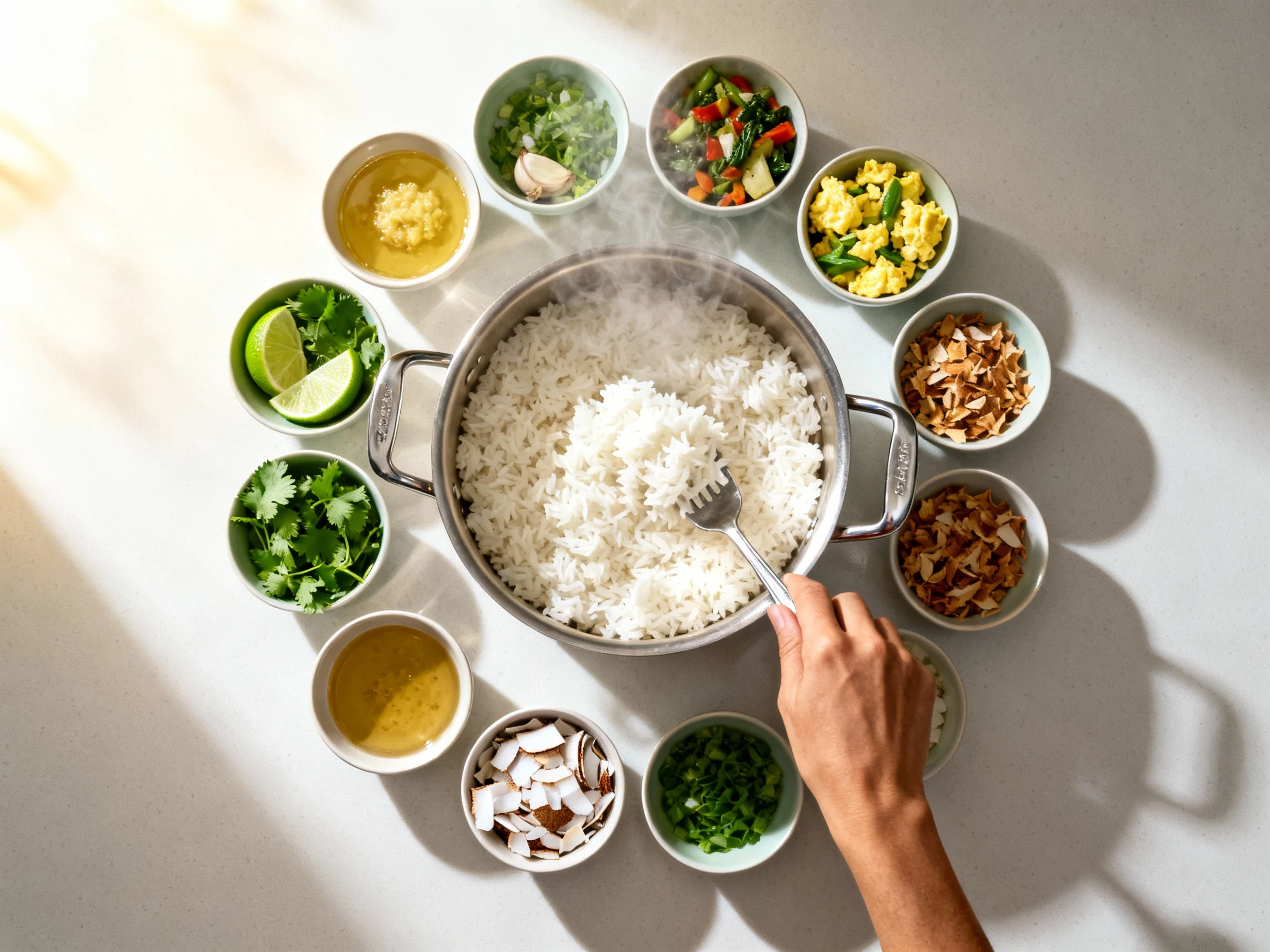 Get the base fluffy and you can turn it into garlicky butter rice, zesty cilantro-lime bowls, lightning-fast fried rice, or cozy coconut pilaf. Minimal ingredients, maximum payoff, and zero drama—unless you count your family fighting over seconds.